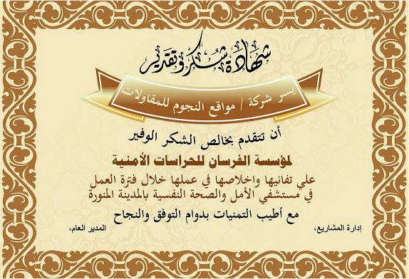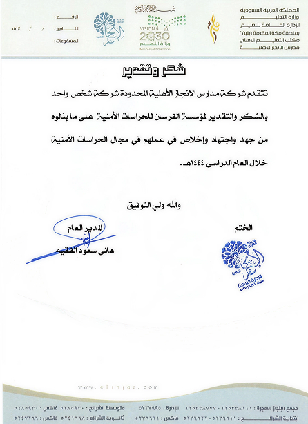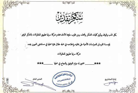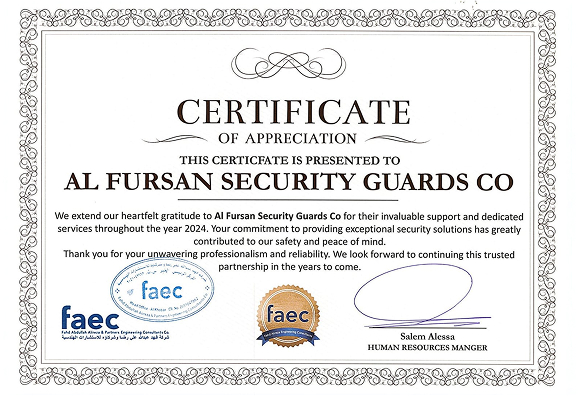 في مؤسسة الفرسان للحراسات الأمنية، نعتز بحصولنا على أبرز الشهادات